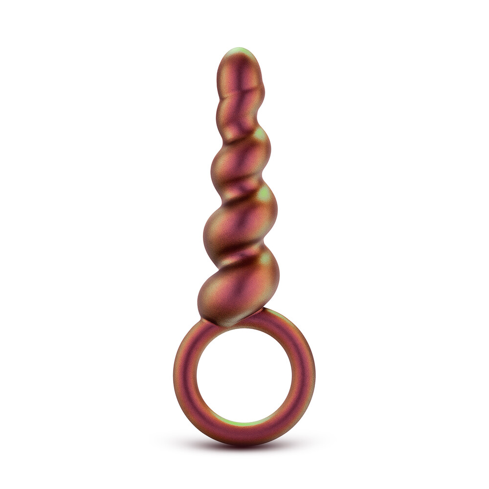 The Spiral Loop Plug has 5 prominent swirls that slowly progress in size for optimal sensations and massage during use. It also has a silicone loop at the base for easy insertion and easy removal.