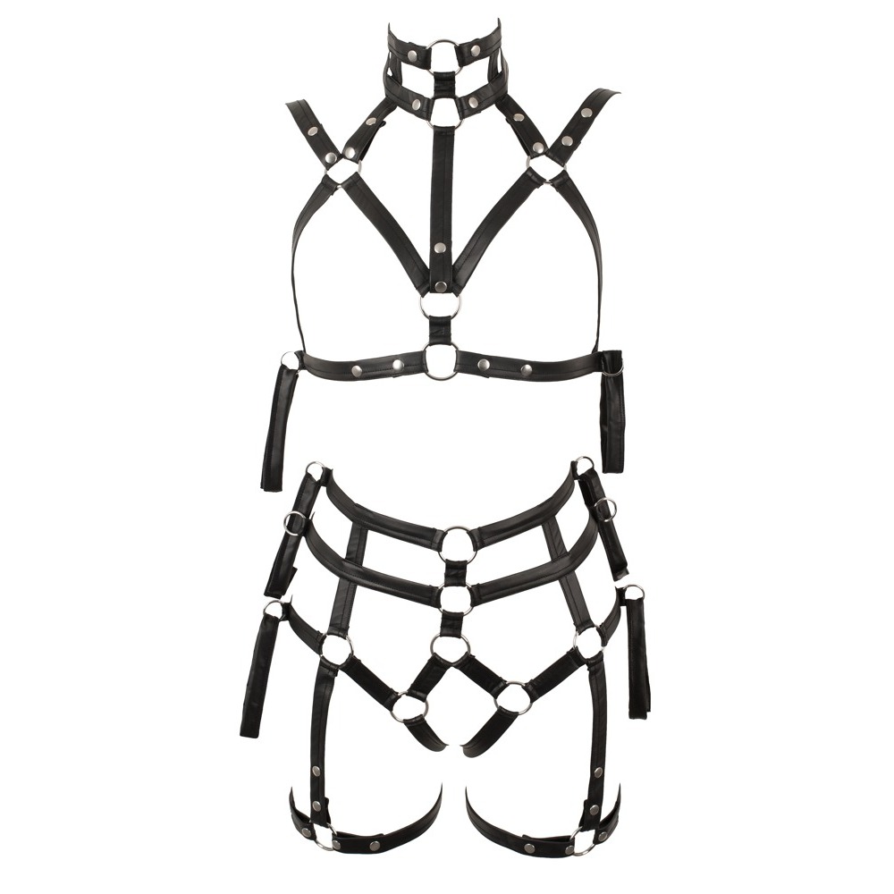 This bondage set stands out because of its beautiful look and the shiny metal studs. It is also really comfortable because it’s very stretchy and because it can be adjusted with the press studs. It can be worn for hours during hot moments of pleasure.