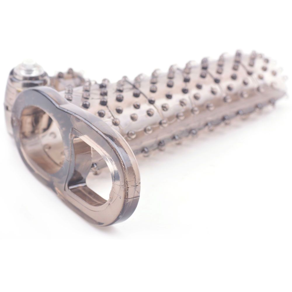 Stretchy jelly cock sleeve, give your partner some added pleasure with the noduled sleeve and vibrating clit stimulator.