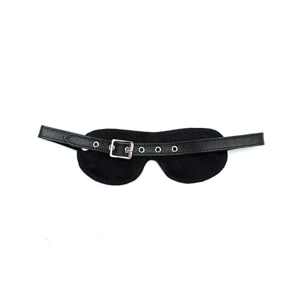 Genuine leather cushioned blindfold, adjustable with buckle.