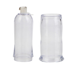 ABS (pump handle) PVC (hose) Silicone (donut and Commander) Nylon (travel bag) SAN (cylinder) 9.5″x 2.5″/ 24 cm x 6 cm (cylinder assembled) 6″x 2.5″/ 15 cm x 6 cm (nested cylinder)