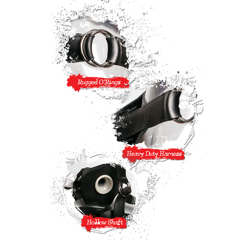 Take strap-on sex to the extreme with the Fetish Fantasy Extreme Hollow Strap-on. This heavy duty hollow strap-on features a 10′” long, 2.5″ thick phthalate-free rubber dong, held in place by a steel o-ring and leather harness. The comfortable leather harness easily adjusts to fit most sizes, while the durable metal o-rings hold everything together. A long hollow plastic tube, measuring 1″ in diameter, is placed inside the rubber dong, making it perfect for both sexes to wear. Anyone who says size doesn’t matter hasn’t experienced this massive strap-on!