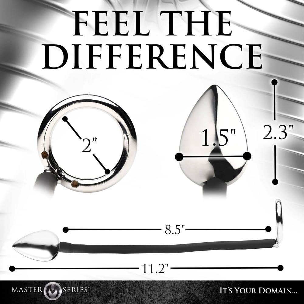 Enjoy a rock-hard shaft and prostate stimulation with a single toy! This dual stimulating Tug and Plug Cock and Ball Ring with Anal Plug is sexy, kinky, and perfect for all experience levels. The tapered tip of the plug helps make insertion easy and the smooth, aluminium alloy glides right in with the help of some lube. The plug connects to a silicone cord. At the end of the cord is an iron ring that slips over your shaft and acts as a C-ring so you can last longer, stay harder and enjoy more even as your prostate is getting stimulated by the anal plug. The metal is also temperature sensitive so you can enjoy temperature play by warming or cooling them down using hot or cold water. All metal is nickel-free for sensitive skin. The silicone cord is made from phthalate-free, premium silicone and is body-safe. Use only water-based or oil-based lubricants for best results. To clean, use warm water and mild soap, then rinse it off and spray with a toy cleaner before patting it dry.