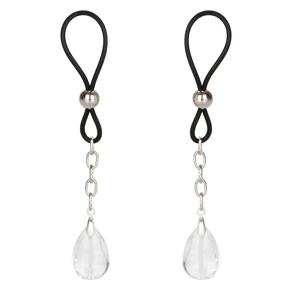 Push sensation to the next level and enjoy teasing nipple play with the Nipple Play Non-Piercing Nipple Jewelry Crystal Teardrops. Explore elevated sensation with the 2 fully adjustable nipple jewel adornments, pliable cinch and sparkling crystals. One glance at the sparkling crystal jewels will inspire frisky fantasies and make your lover’s appetite water. Inspire feelings of sensuality, confidence and arousal when you tighten the slip cinch.