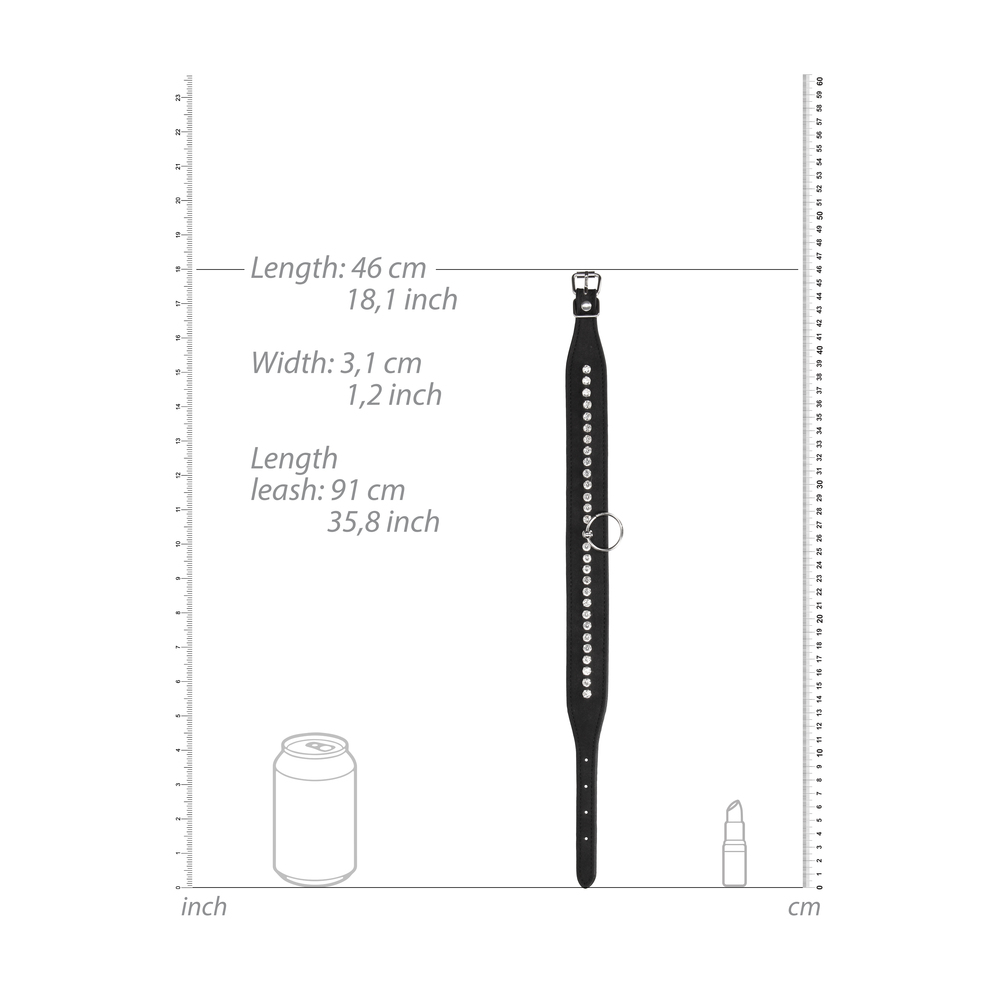 Get ready to please or receive in the intense Diamond BDSM line. Glamorously tough, the perfect combination of firm (faux) leather and glamourous diamond studs will turn you into the star attraction of the night. Collar and claim this adjustable Collar is gorgeous on its own but is even better with the Leash. The Collar offers 4 different sizes and has a sturdy, yet comfortable feel.
