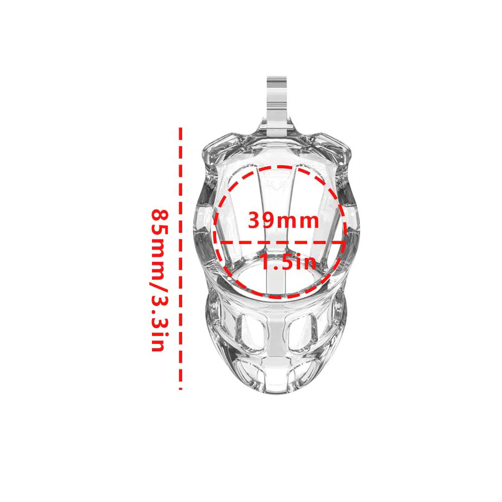 The opening at the front of each P-Cage allows the wearer to urinate without removing the cage. This penis cage set includes 5 rings in different sizes, ranging between 43 – 55 mm. In addition, it includes 1 copper built-in lock and 3 plastic numbered padlocks. The plastic locks can be cut off with scissors after a single use. Finally, one plastic screw is included as an alternative to the copper built-in lock, which may not pass airport security checks, while the plastic lock is airport-friendly.