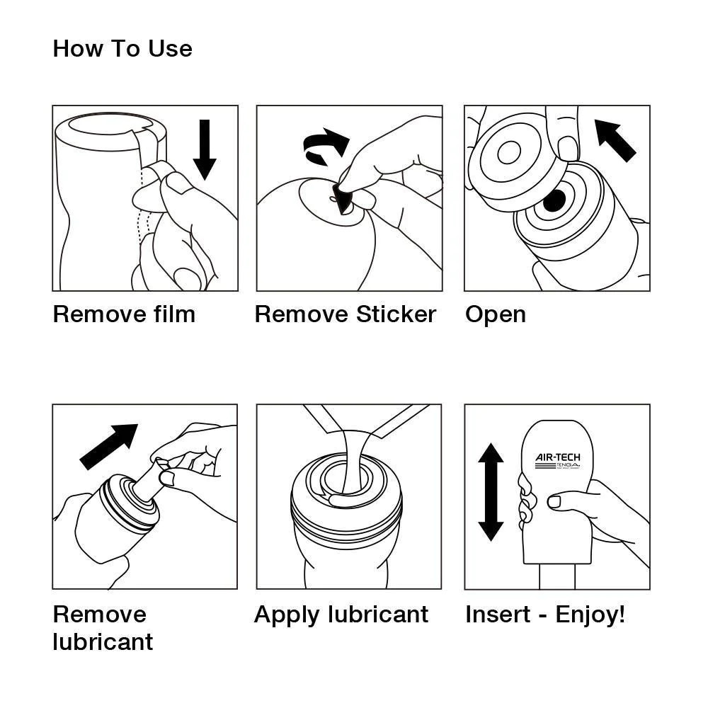 This cup is exceptionally easy to use, Remove the film and sticker, open the Cup, remove lubricant and apply it. Once you’ve enjoyed every inch of the Air-Tech Ultra Cup, simply remove the sleeve, wash and dry off with a towel, leaving it ready for repeat play.