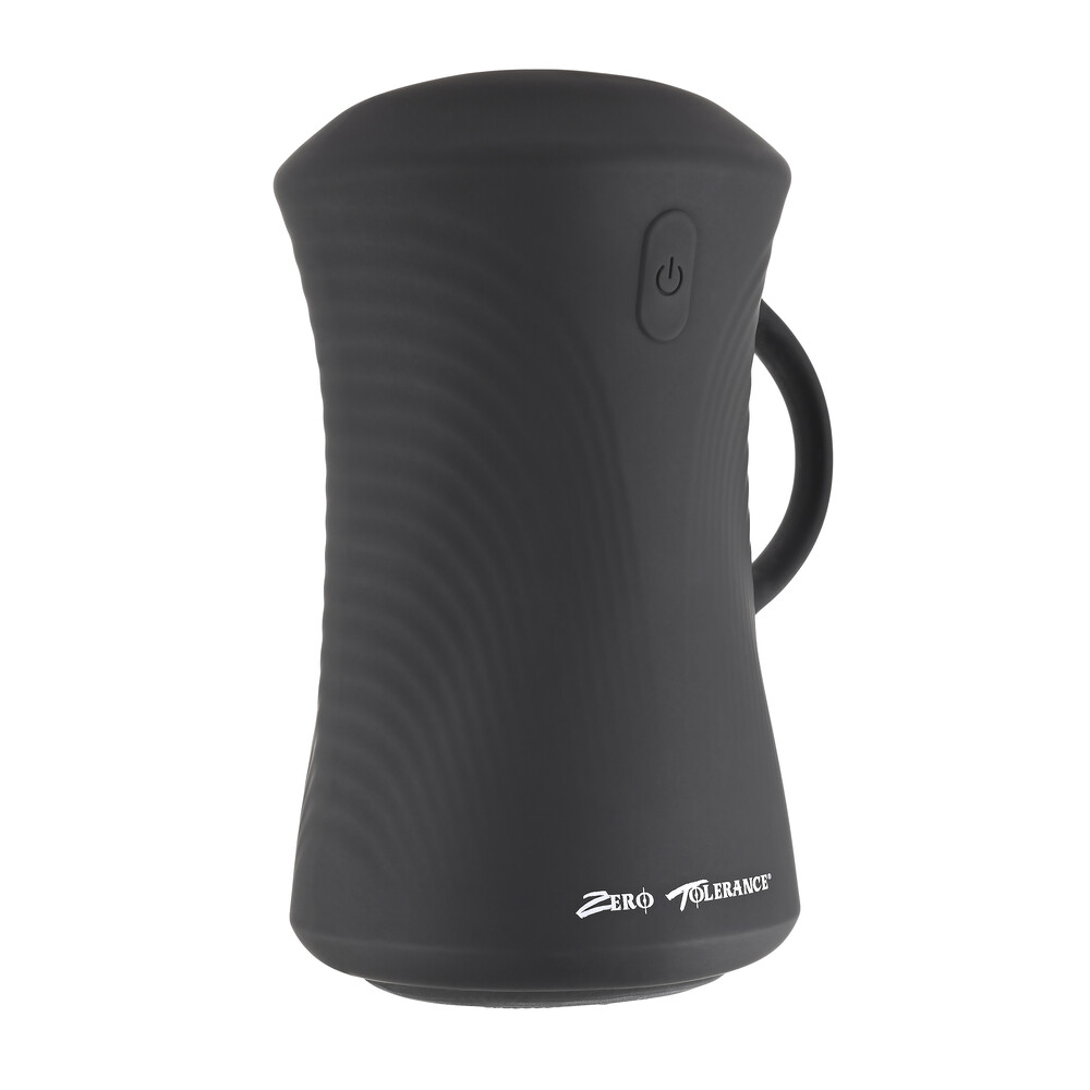 Intense pleasure in the palm of your hand! Enjoy the unique feel of this powerful gyrating-ball stroker that surrounds you with 3 speeds of deep circular vibration. Keep a solid grip on this mighty device with the textured canister and external handle that offers a loop for your thumb or fingers then get ready to experience the ride of your life! 1-button light-up control panel, made from supple body-safe silicone, completely waterproof submersible, and USB rechargeable.